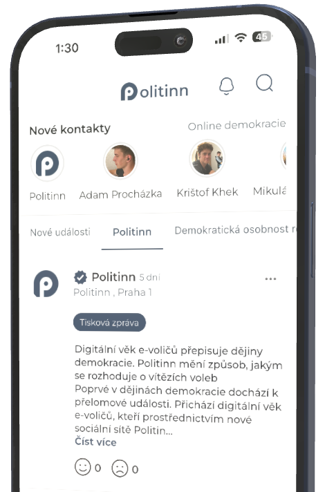 However, for the first time in history, a fundamental civilizational change is emerging: ONLINE DEMOCRACY. This modern model allows citizens to do what was previously impossible – daily and immediate participation in state governance. The Politinn social network provides people with a tool that allows them to actively respond to politicians' proposals, evaluate individual steps of state administration, discuss, propose their own solutions, vote in real time and protect their interests directly where previously only others decided on them.